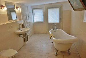 - 1 Badezimmer im Erdgeschoss mit romantischer Badewanne mit Füßen und WC - 1 Badezimmer mit Badewanne und WC |