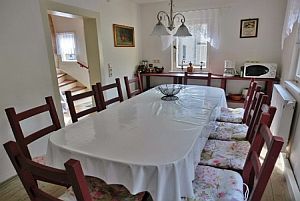 - 1 große Wohnküche im Erdgeschoss mit Tisch und Stühlen, Küchenzeile mit Mikrowelle, Herd Ceran - Kochfeld 4 Platten, Backofen, Geschirrspüler, Kühlschrank mit Gefrierfach |
