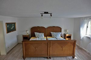 - 2 Schlafzimmer im ausgebauten Dachgeschoss mit Betten auseinander, Schrank, Zentralheizung