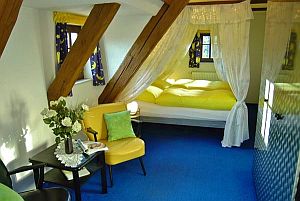 - 1 Schlafzimmer mit Doppelbett - Erntewagen, Schrank mit Spiegel, Bettwäsche inklusive - 1 Schlafzimmer mit Doppelbett - Himmelbett, Schrank mit Spiegel, Bettwäsche inklusive |