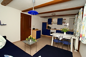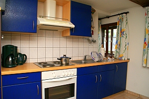 - 1 Wohnküche mit Küchenzeile mit Herd 4 Platten, Backofen, Geschirrspüler |