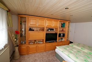 - Schrankwand im Wohnschlafzimmer mit Radio, CD, Kassette und Flachbild - SAT TV |