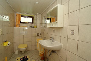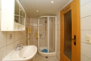 - 1 Badezimmer mit Spiegelschrank, Dusche, WC und Fön - kleine Handtücher und Badehandtücher inklusive |