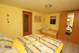 - 1 separates Schlafzimmer mit Doppelbett, 1 Einzelbett und großen Kleiderschrank mit Spiegel
