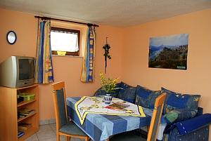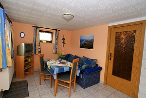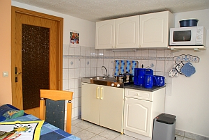 - 1 Wohnküche mit Sofa, auch als Schlafsofa 1,40 m x 2 m, Radio und Flachbild - SAT - TV
