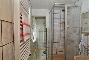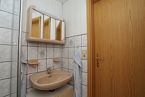 - 1 Badezimmer mit Spiegelschrank, Dusche, WC und Fön - kleine Handtücher und Badehandtücher inklusive |