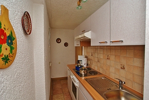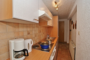 - 1 Küche mit Herd 4 Platten, Backofen, Kühlschrank, Dunstabzugshaube, Eierkocher, Kaffeemaschine - Zentralheizung , Wäschetrockner vorhanden