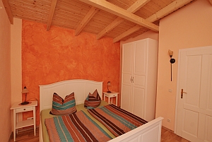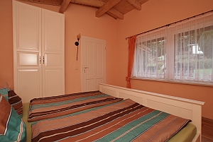 Schlafzimmer mit Doppelbett und großen Kleiderschrank |