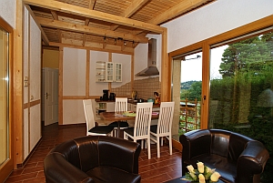 - 1 große Wohnküche mit 3 sitzer Sofa, Tisch und 2 gemütliche Sessel |