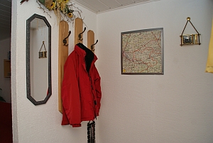 - Garderobe mit Spiegel im Eingangsbereich und Wanderkarte |