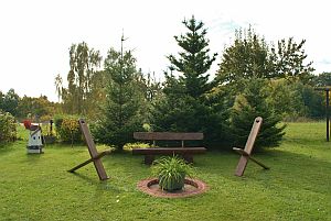 | - Grill auf Wunsch vorhanden und Feuerstelle mit Bank und 2 Stühlen für gemütliche Grillabende |