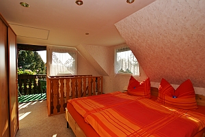 | - 1 Schlafzimmer in der 1. Etage mit Doppelbett und mit Zugang zum Balkon |