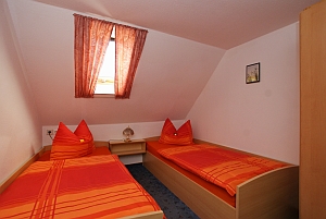 | - 1 Schlafzimmer in der 1. Etage mit Betten auseinander und Kleiderschrank |